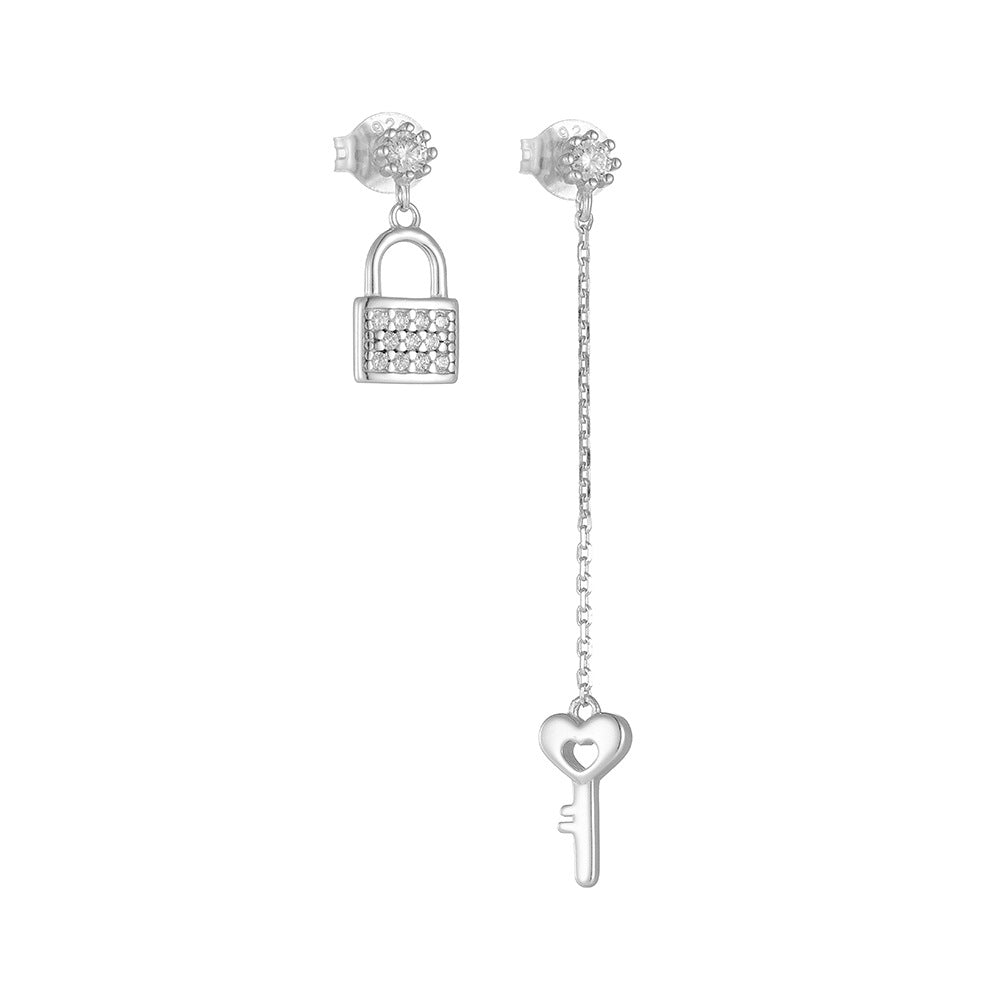 These exquisite Asymmetrical Zircon Lock and Long Tassel Key Sterling Silver Drop Earrings bring artful luxury to any look. Crafted with delicate detail. they feature a Zircon Lock and a Long Tassel Key in a stunning sterling silver. Elegant and sophisticated. they're perfect for elevating any outfit.
