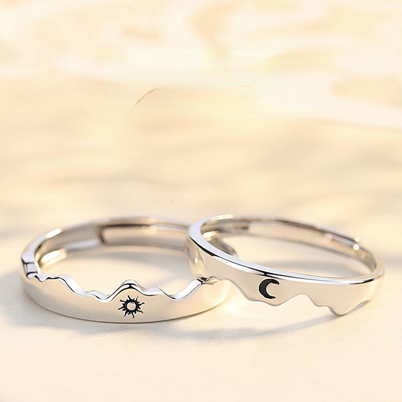 This Sun and Moon Mountain Silver Couple Ring is a stylish and meaningful addition to any jewelry collection. The adjustable opening ensures a perfect and comfortable fit. while the mountain shape with the sun and moon pattern makes the ring both aesthetically pleasing and symbolic. Show your devotion with this gorgeous couple ring.