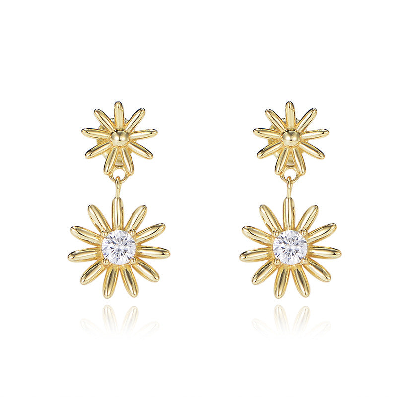 This pair of Daisy Flower with Zircon Silver Drop Earrings for Women adds a touch of elegance to any outfit.