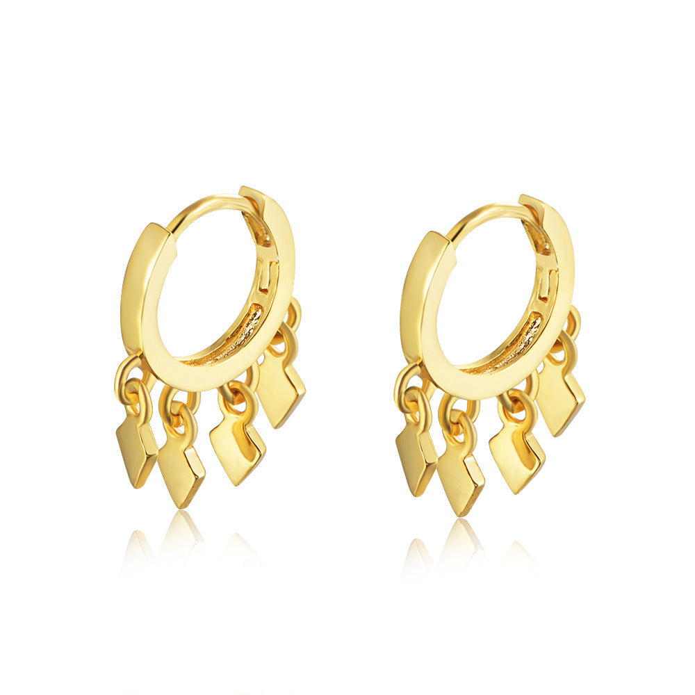 Look elegant with this women's Rhombus Short Tassel Silver Studs Earrings. Crafted with a striking Rhombus pendant. this hoop earrings feature a small yet eye-catching tassel for a sophisticated finish. Made from sterling silver plated golden. this earrings add a touch of timeless sophistication to any formal or casual style.