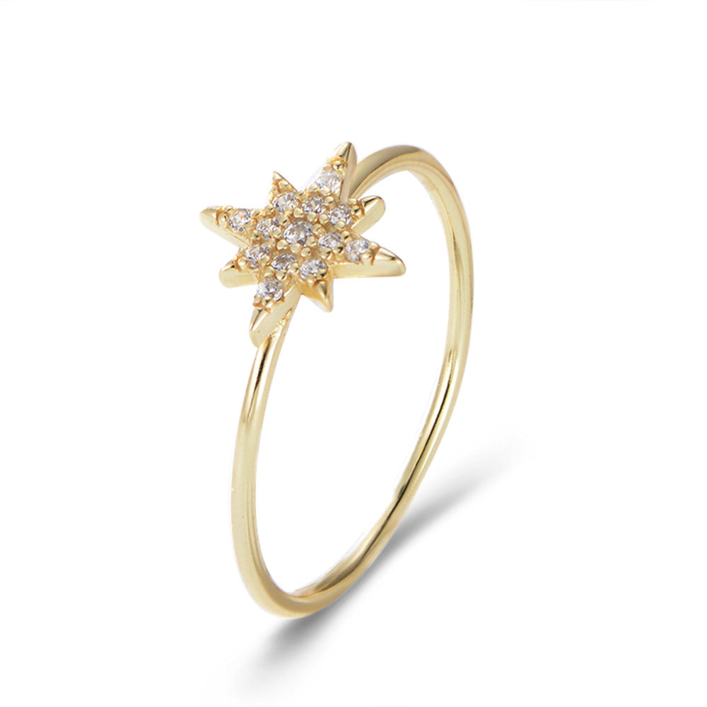 This beautiful White Zircon Octagonal Star Design Sterling Silver Ring features a stunning octagonal star decorated with tiny white zircons. It's an eye-catching piece of jewelry that makes a perfect accessory for any occasion.