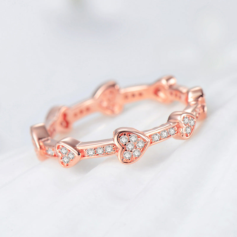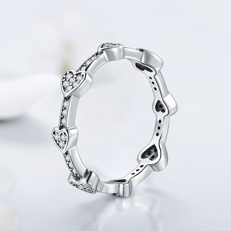 S925 Sterling Silver Full Zircon Heart-shaped Ring for Women, European and American Instagram Popular Stacked Silver Index Finger Ring, Simple and Fashionable Jewelry