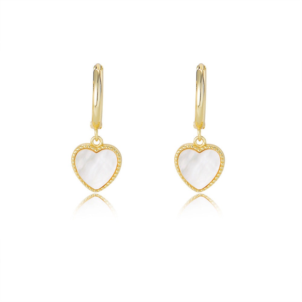 This beautiful Silver Drop Earrings for Women feature a classic heart-shape Mother of Pearl pendant. The lustrous pendant is suspended from the hoop. creating a simple yet striking design. Perfect for adding a touch of elegant sophistication.