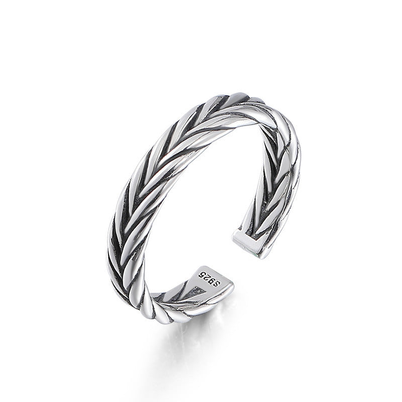 This exquisite woven twill opening sterling silver ring adds a touch of opulence to any ensemble. Expertly crafted with a delicate woven twill pattern. its intricacy is a testament to its quality and sophistication. An ideal choice for special occasions.