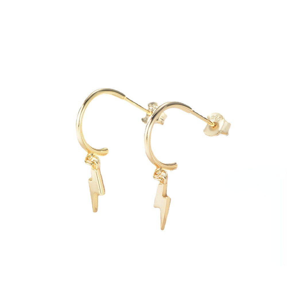 This beautiful Sterling Silver Lightning Pendant Studs Earrings is a must-have for any modern woman. Delicated and fashionable. the C-shape studs and lightning motif make this earrings a perfect addition to any outfit. Crafted from sterling silver. durable and long-lasting. they will add a touch of sparkle to your wardrobe.