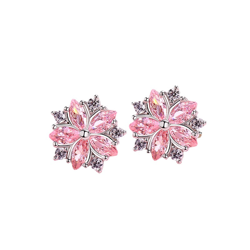 This elegant earrings is crafted from sterling silver and adorned with cherry blossoms decorated with pink zircon. perfect for any special occasion. The beautiful cherry blossom and pink zircon add a subtle sparkle and the delicate design makes them a fashionable accessory.