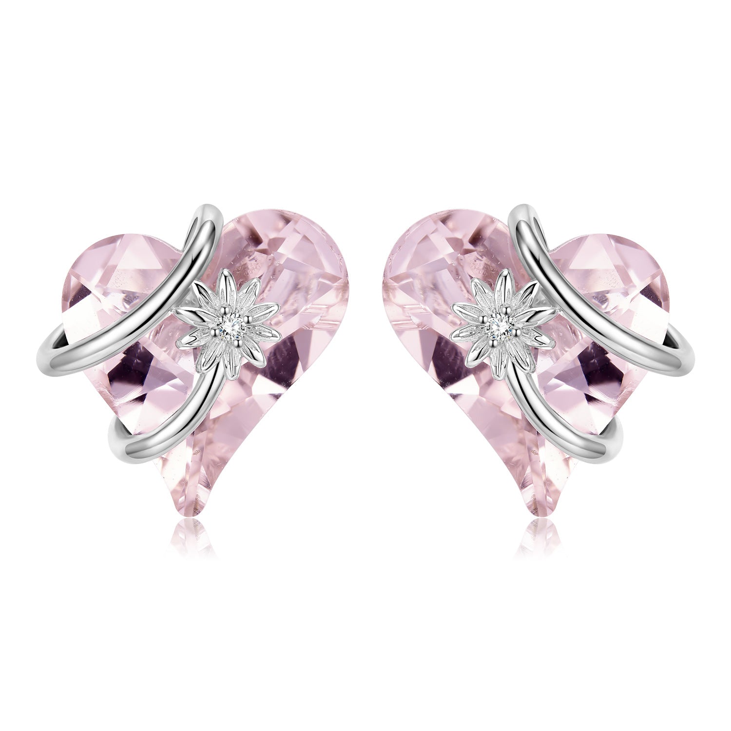 These beautiful Heart Shape Pink Zircon Entangled Flower Silver Stud Earrings will add a touch of elegance and timeless style to any look. Crafted from high-quality sterling silver. the intricate design features a heart shape with a flower intertwined with pink zircon stones to create a classic and romantic aesthetic.