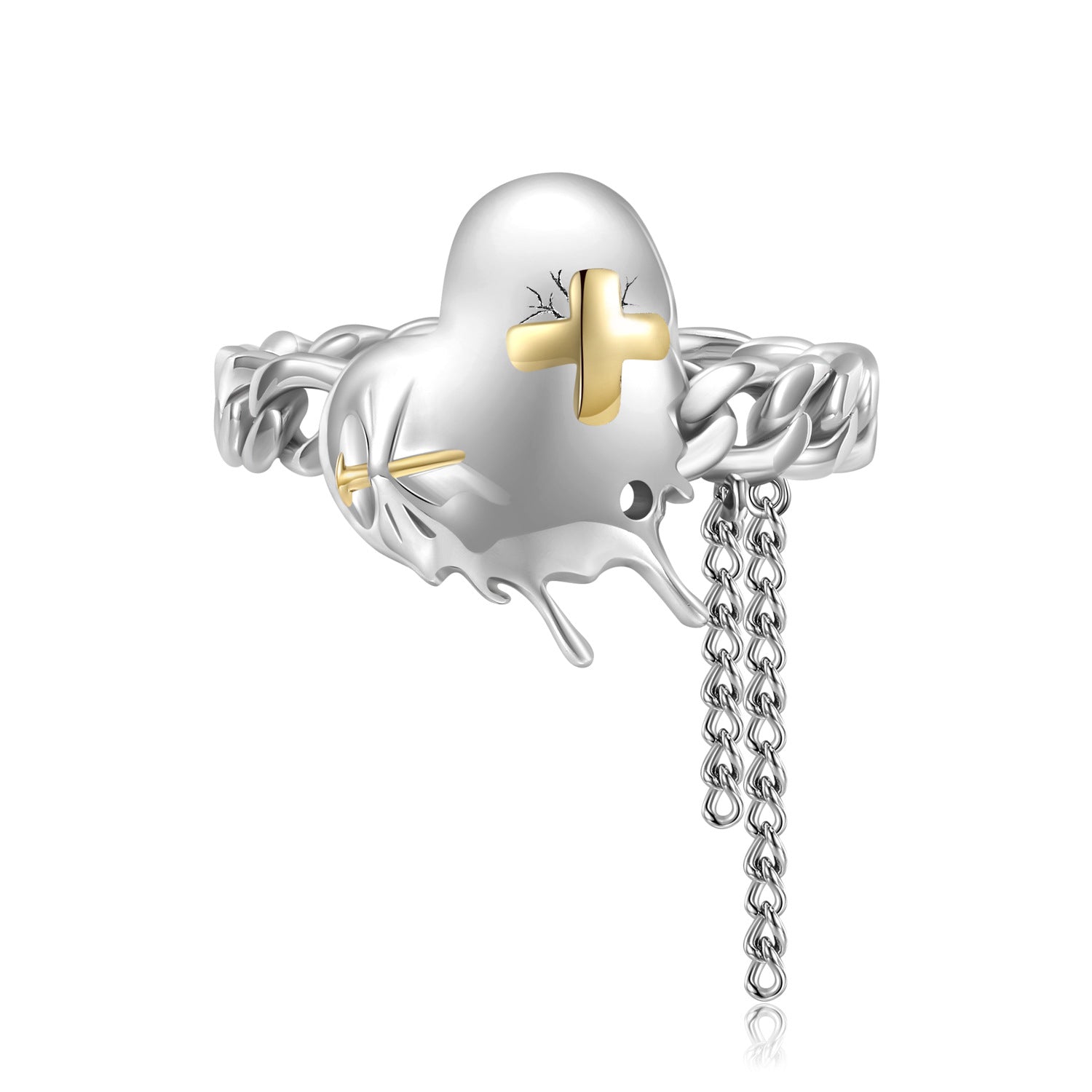 Dazzle your special someone with the perfect gift with this Repaired Melting Heart Silver Chain Ring. Crafted with sterling silver and features the chain as ring arm. it's a stunning piece of jewelry that will make a statement. Durable and timeless. this elegant ring is sure to be treasured for years to come.