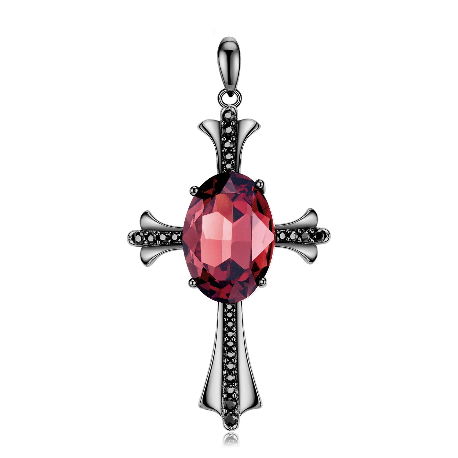 This beautiful pendant features a black cross with an oval red zircon gemstone set in the middle for a truly retro and elegant finish. The sterling silver material makes the pendant strong yet light. perfect for everyday wear.