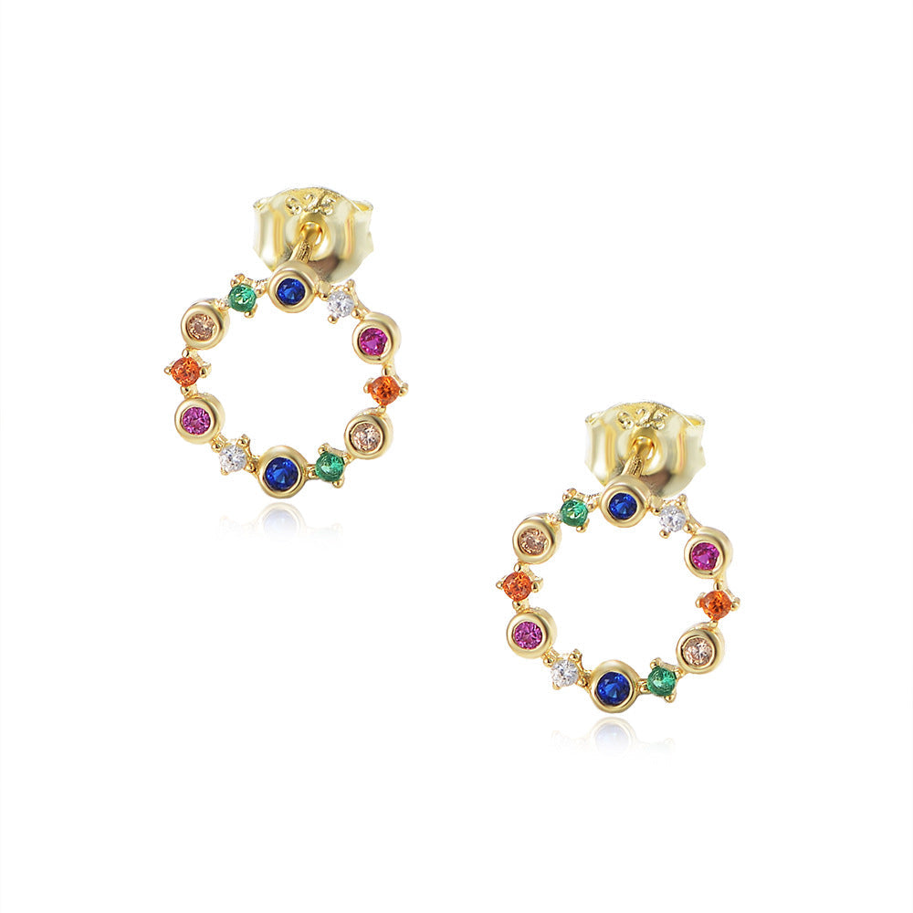 Elevate any ensemble with this visually striking Colourful Mardi Gras Studs Earrings. a timeless work of art featuring a luminous wreath with iridescent zircon gemstones for a captivating and enigmatic design. A unique and sophisticated piece that will imbue your look with an air of luxurious opulence.