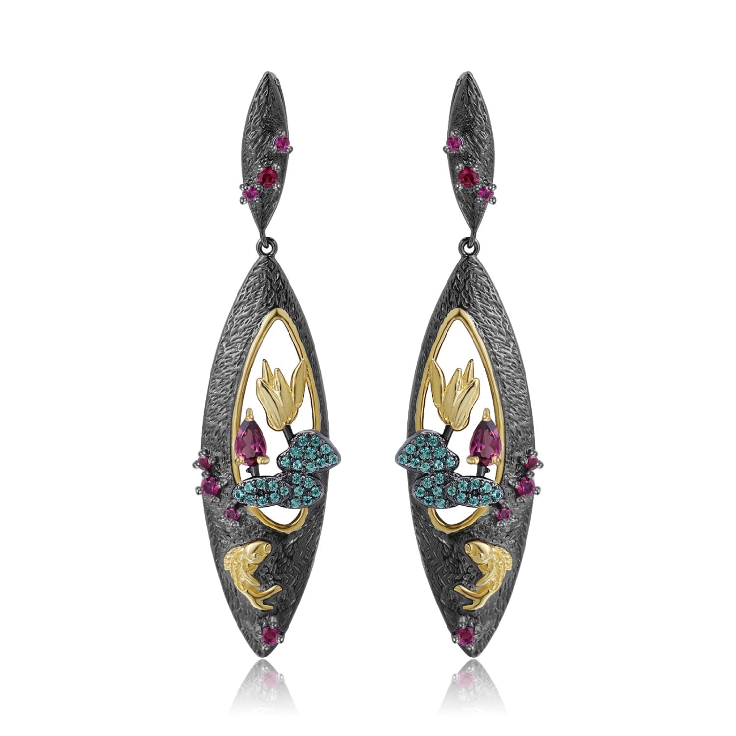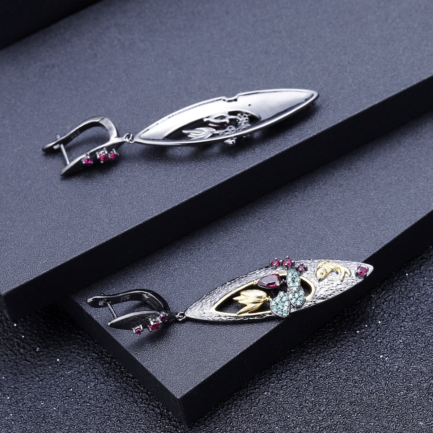 This Premium Natural Rose Pomegranate Silver Drop Earrings for Women feature an ornate lotus pond pattern with Rose Pomegranate. set in the beautiful marquise shape pendant. This unique earrings will be sure to add an elegant touch to any look.