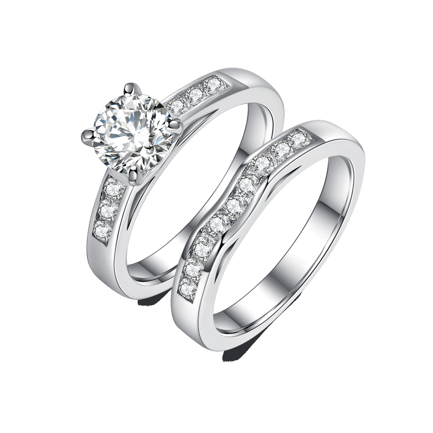 This Semi Eternity Moissanite Band Ring Pack is perfect for the modern woman who wants to combine classic and contemporary styles. It features a semi eternity Moissanite band ring design. with one boasting a round cut Moissanite stone for a sparkling. timeless finish.