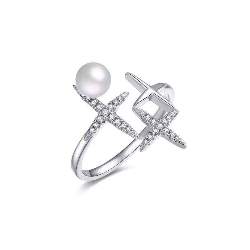 This Zircon Cross Star with Pearl Silver Ring is the perfect blend of elegance and modernity.The ring features an opening design with stunning Zircon Cross Stars and a round pearl. making it the perfect choice for an understated yet eye-catching piece. This gorgeous ring will be sure to make an unforgettable impression.