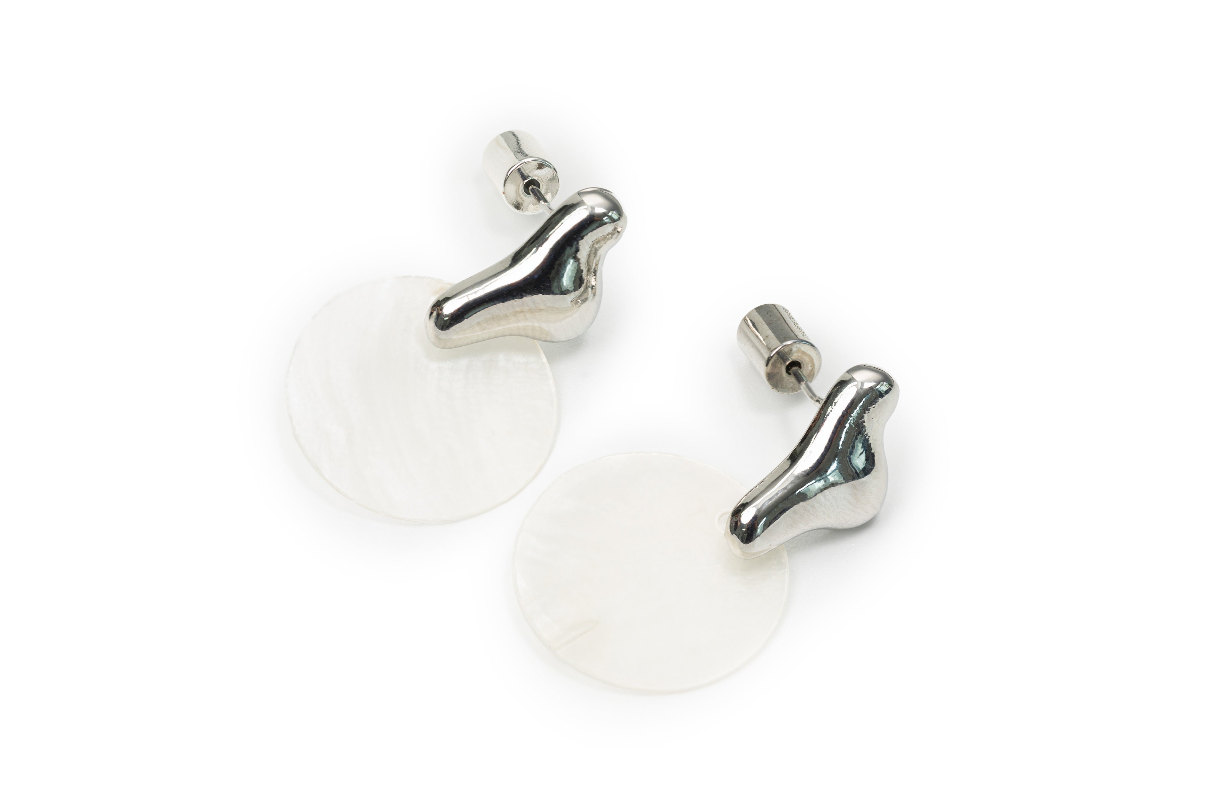 This beautiful silver earring features an elegant white circle pendant. adding an eye-catching design to any outfit. The classic circle shape will bring sophistication to your look.