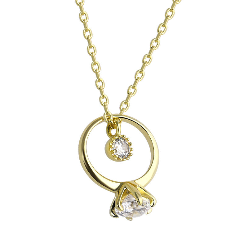 This stylish Zircon Ring Pendant Silver Necklace will make a perfect addition to any outfit. Featuring an unique pendant of a round Zircon ring and a small round zircon. it is crafted from sterling silver plated in gold for lasting quality and shine. This necklace is sure to become your go-to accessory.