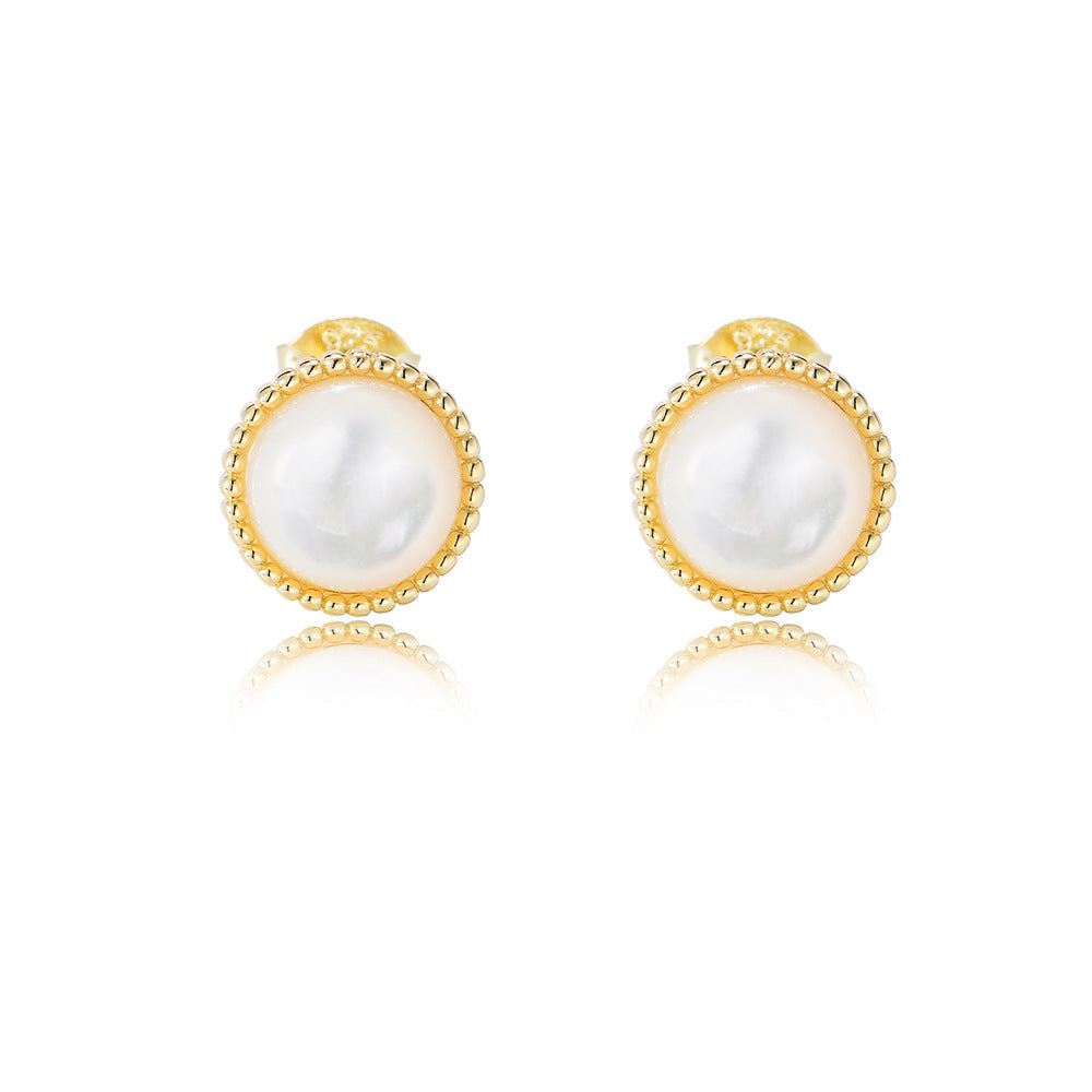 This beautiful earrings offer a classic look perfect for any occasion. Crafted with Mother-of-Pearl in a vintage round design. they are encased in a polished sterling silver setting. This classic earrings is sure to enhance any outfit.