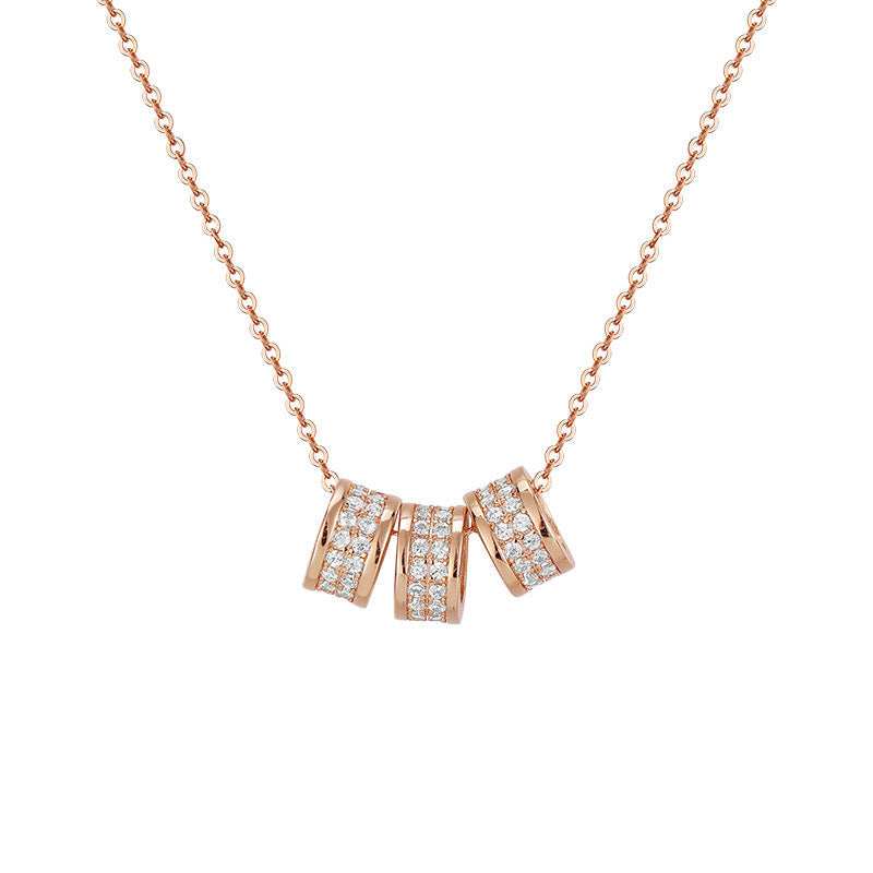 This necklace features three rings pendant with double row zircons. adding a luxurious sparkle and enhancing any outfit. Constructed in sterling silver. this necklace ensures a superior quality that is sure to last for years to come.