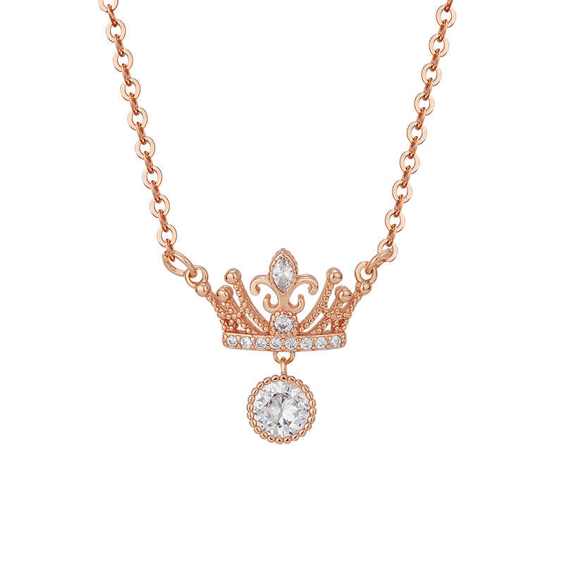 This stylish necklace features a zircon encrusted crown pendant. decorated with a shinny round zircon adding a touch of sparkle to any outfit. The sterling silver necklace is a timeless piece of jewelry that is sure to make a statement.
