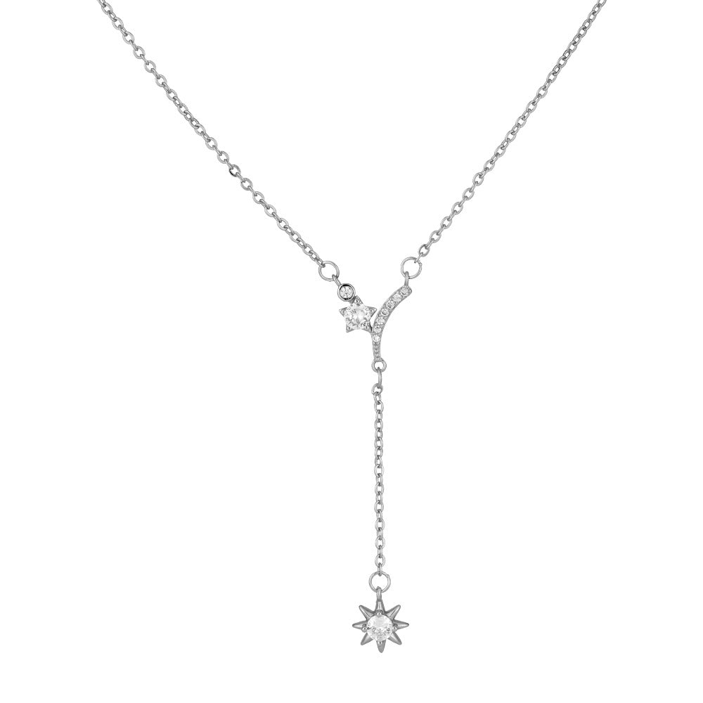 This elegant silver necklace for women features a stylish V-shape pendant with an elegant tassel and an eye-catching zircon sun. Perfect for adding a touch of sparkle to any look. this necklace is sure to be admired.
