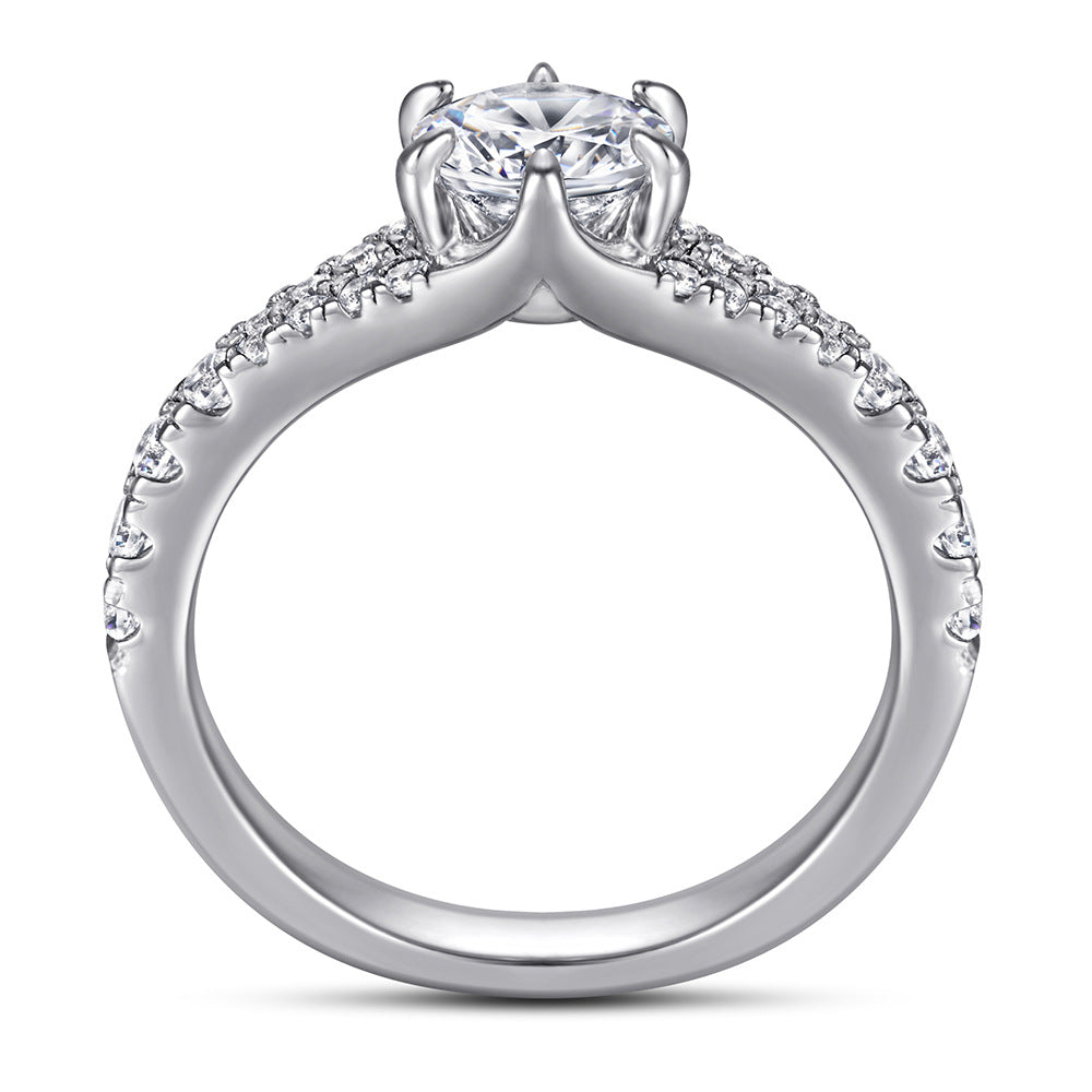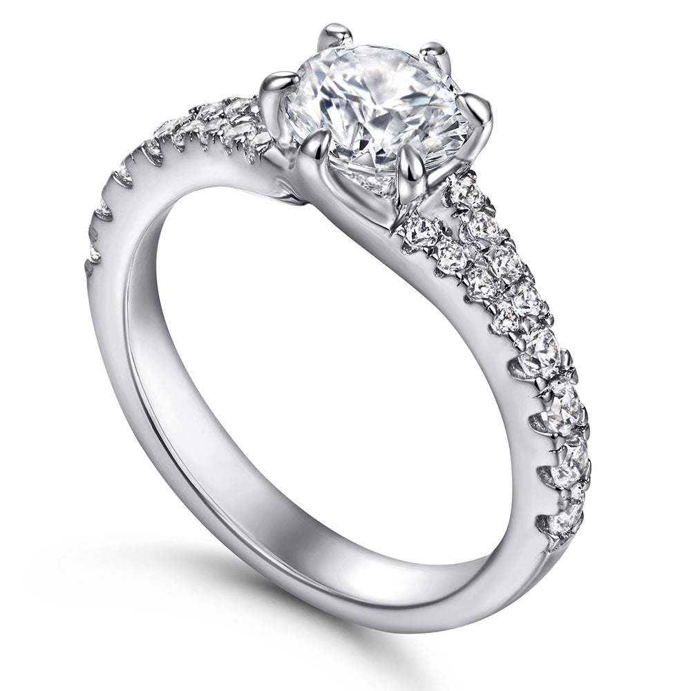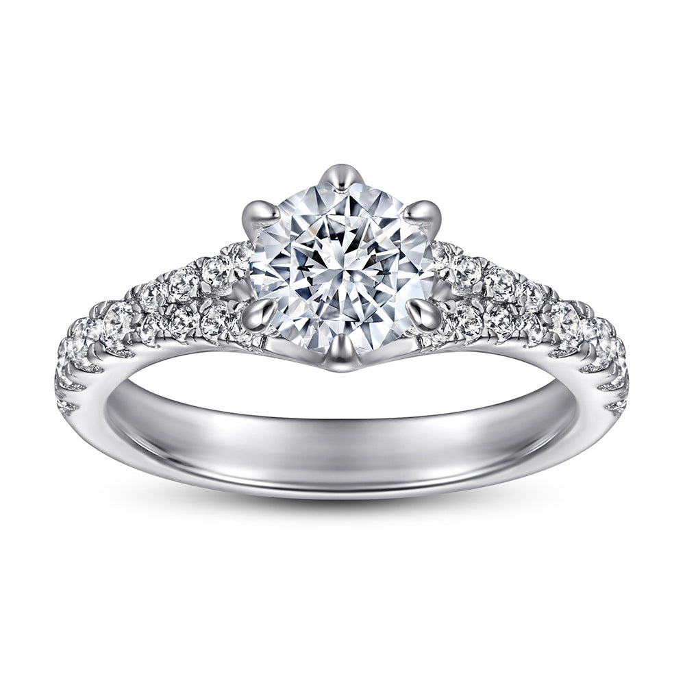 This Six Prongs Round Zircon Modern Split Shank Silver Ring features a six prongs round zircon centerpiece with a modern split shank ring arm decorated with small zircons. This luxurious ring is crafted from the quality sterling silver. making it both stylish and highly durable.