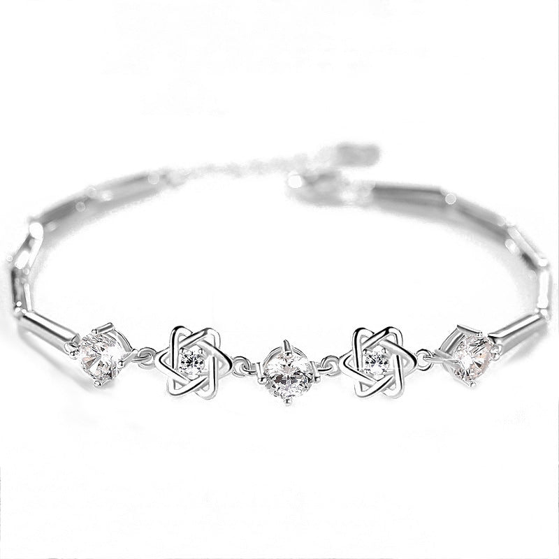 This Six Stars with Zircon Silver Bracelet for Women is a luxurious piece to adorn your wrist. Embellished with hexagonal stars and embedded with elegant Zircon. this bracelet radiates a sophisticated charm that is guaranteed to turn heads. Perfect for special occasions or to layer in everyday style.