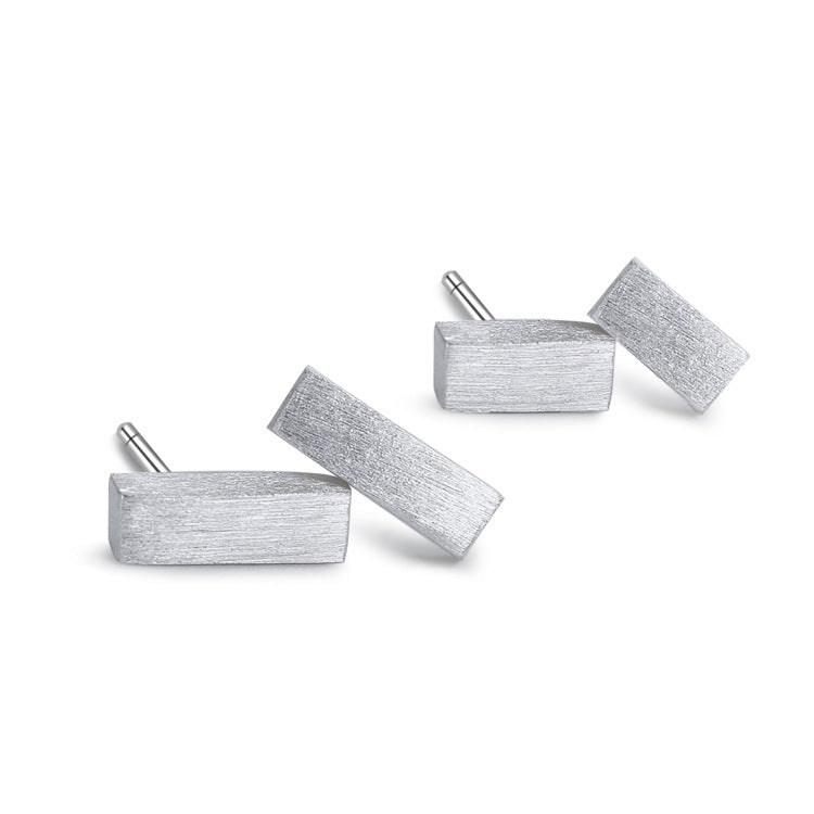 This studs earring is a simple but fashion accessory. It have a rectangular cuboid shape. symbolizing stability and firmness. Its surface using wire drawing technology. emits a low-key luster. Its material is pure silver. is comfortable for daily wear.