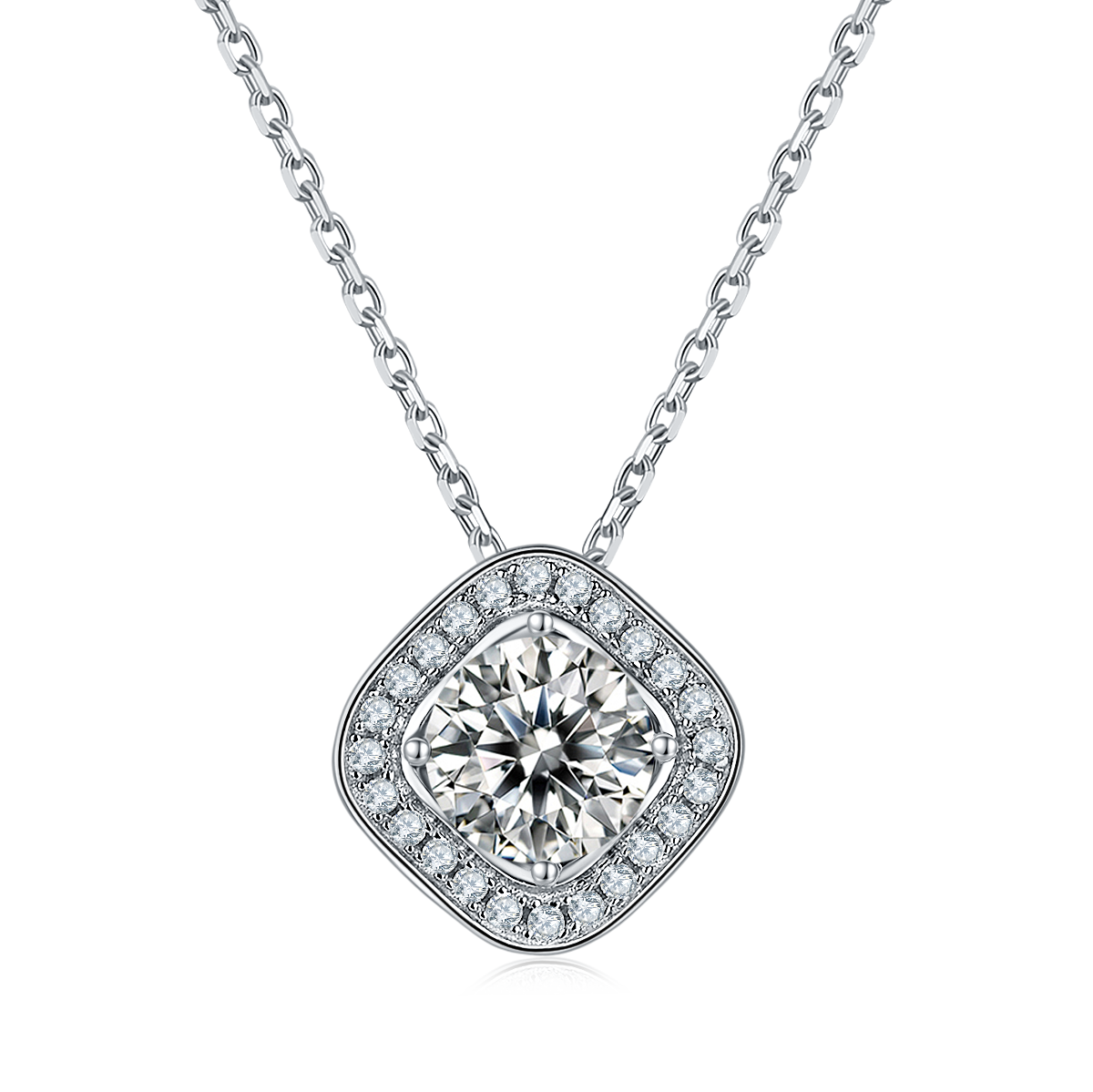 This exquisite necklace features a 1.0-carat round cut Moissanite stone as its centerpiece. which is known for its brilliant sparkle and exceptional durability.