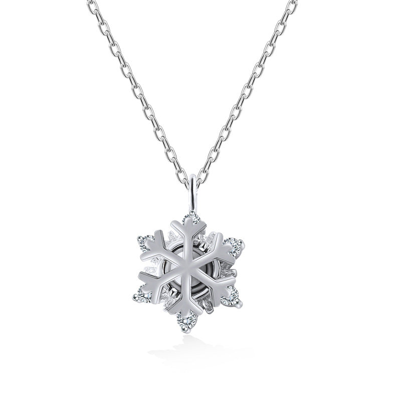This stunning necklace features a spinning Snowflake pendant with Zircon for a shimmering and eye-catching look. The exquisite design is perfect for adding a touch of glamour to your outfit.