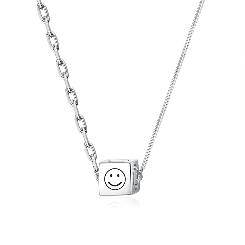 This Smiley Face Cube Pendant Silver Necklace is perfect for the fashionable woman. Its playful pendant adds a touch of fun to any outfit. Crafted from sterling silver. this elegant necklace will give your wardrobe a hint of charm.