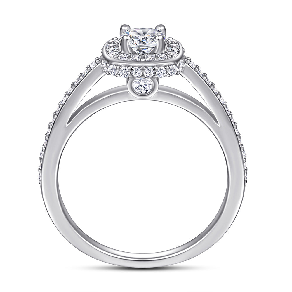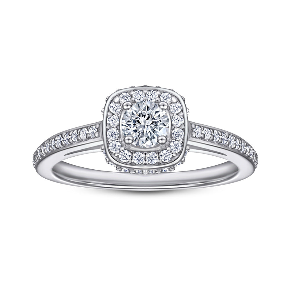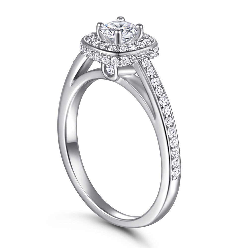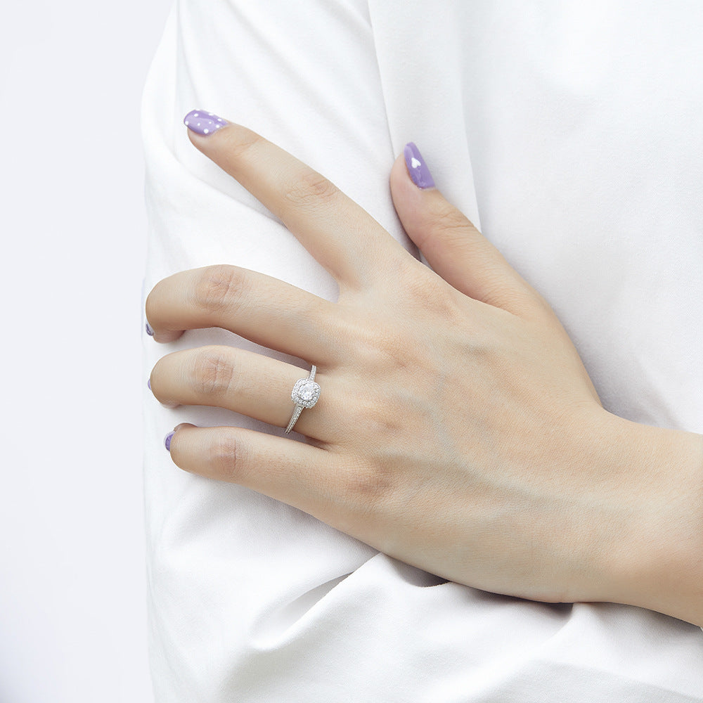 This Round Zircon Square Soleste Halo Silver Ring is an exquisite modern jewelry piece combining the classic sparkle of round Zircon with the modern brilliance of Square Soleste Halo. And the ring arm is decorated with small Zircons for sparkle. Crafted of sterling silver. this ring is perfect for any occasion.