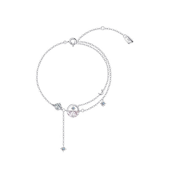 This chic. dainty bracelet features a circle with the elegant Star Ocean design encrusted zircon adorned . making it perfect for any occasions. Crafted from sterling Silver. it is sure to add a touch of understated sophistication to any outfit.