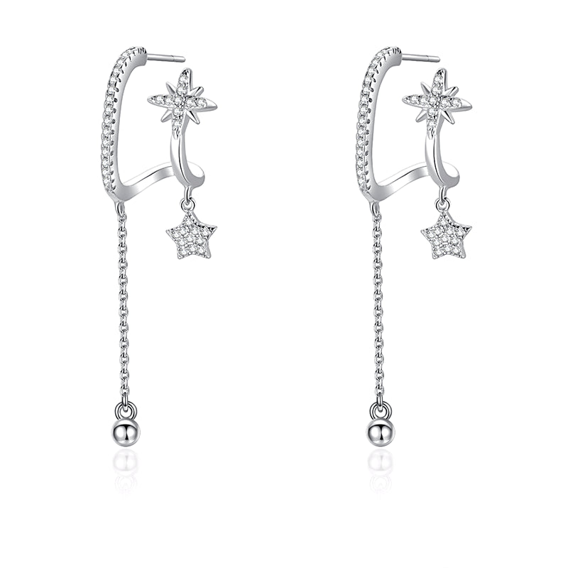 This fancy Zircon Star Tassel Double Layer C Shape Silver Drop Earrings for Women is sure to add a spark of sophistication and glamour to any ensemble. Crafted from sterling silver with a C-shape double layer design. this earrings feature beautiful Zircon stars with tassel accents for an eye-catching look.
