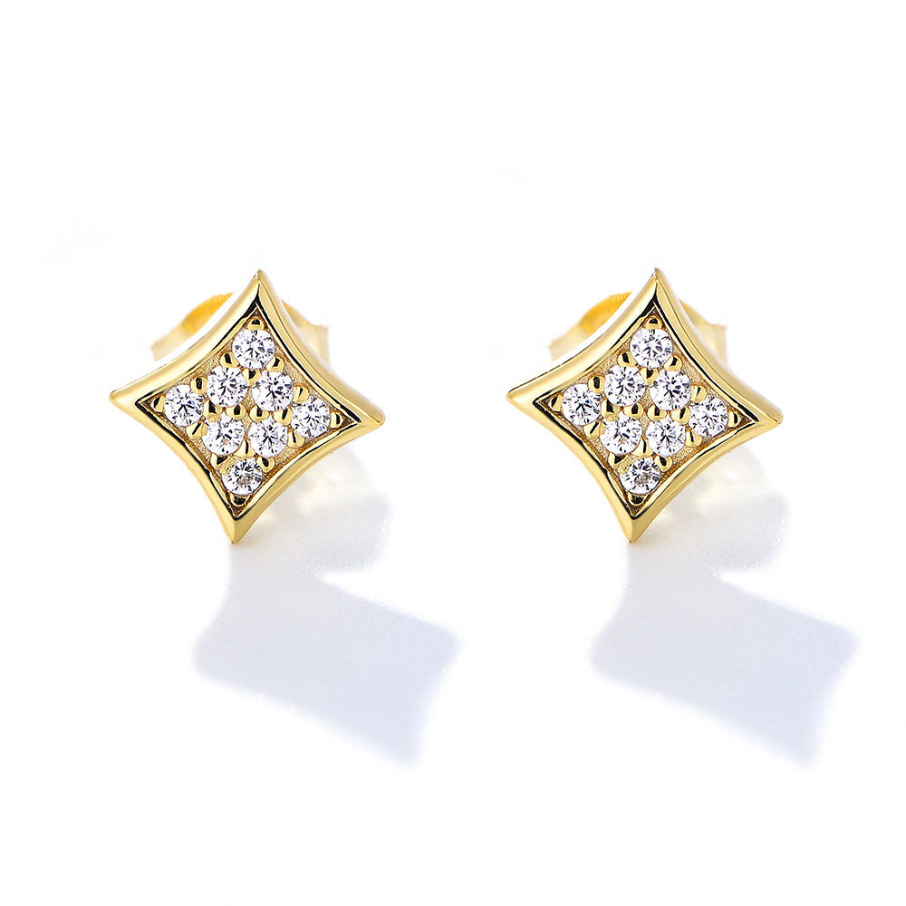 Sparkle with this geometric rhombus stud earrings for women - detailed with stunning Zircon stones. Crafted from sterling silver for a timeless look. It's perfect for any occasion.