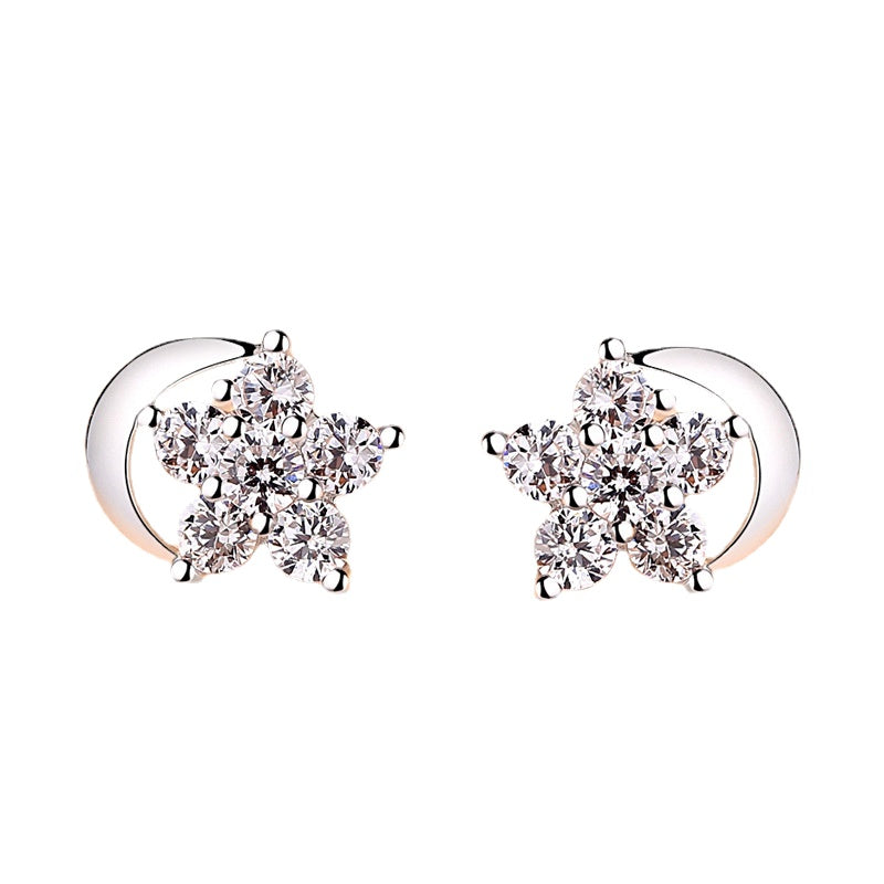 Glam up any look with this Moon and Zircon Star Silver Studs Earrings for Women. Crafted from sterling silver. this earrings feature a sparkling zircon star and a delicate moon for a touch of charm. Add a touch of style to your ensemble with this timeless piece of jewelry.