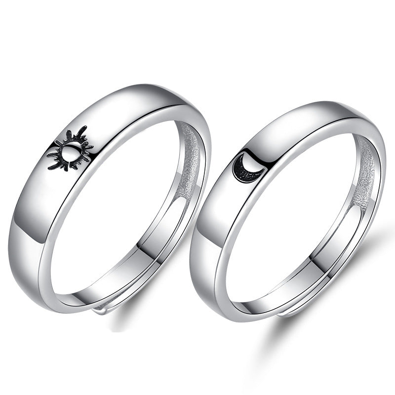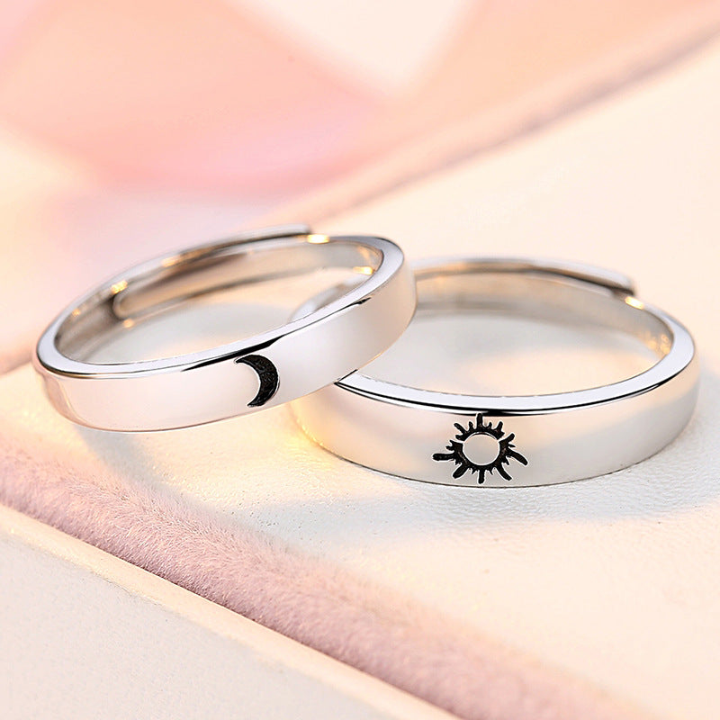 This Silver Couple Ring features an adjustable opening and a polished sterling silver finish with a delicate Sun and Moon pattern. Wear this timeless piece of jewelry to express your connection to your partner in a stylish and meaningful way.