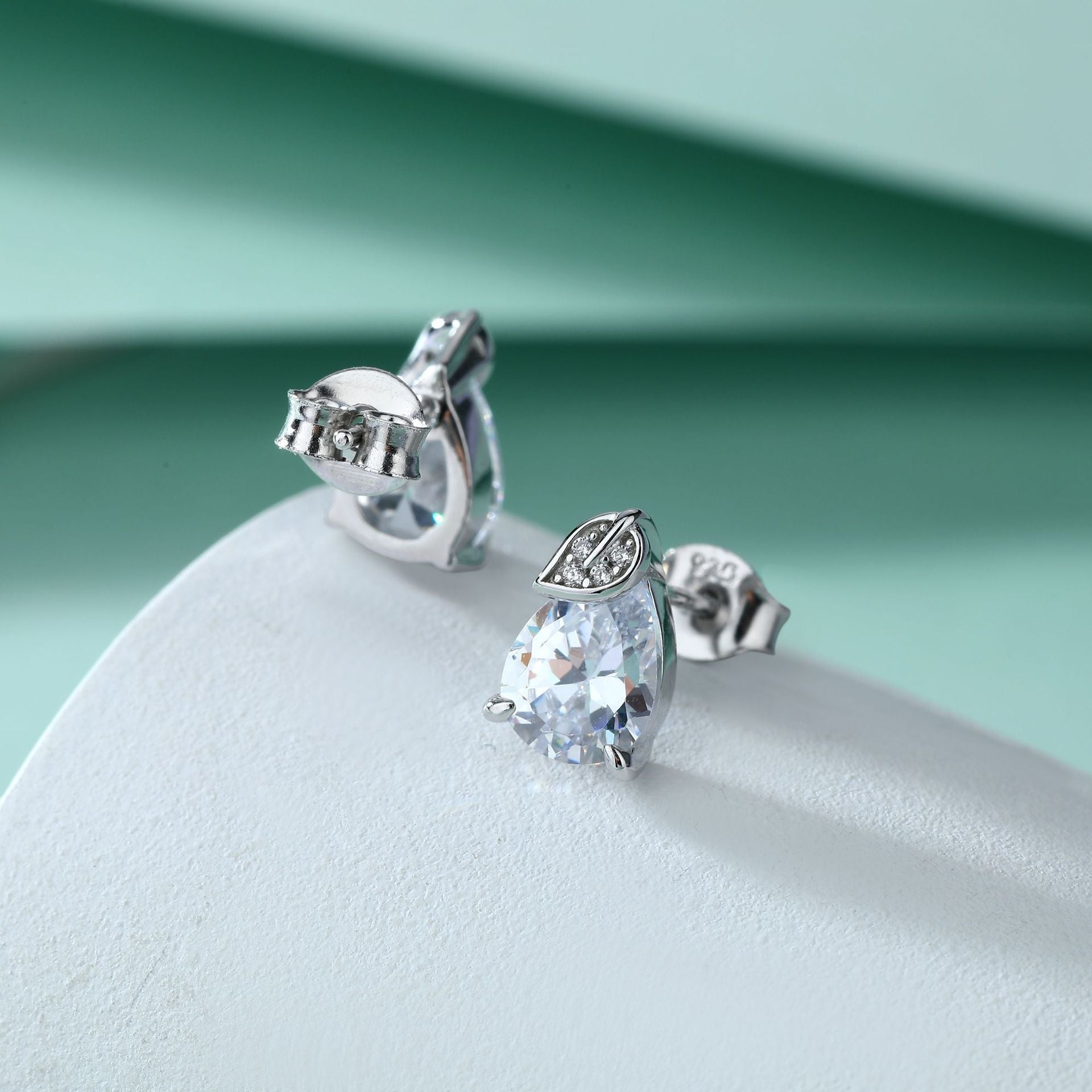 This elegant Pear Drop Zircon with Leaf Silver Stud Earrings is perfect for a special occasion. Crafted from sterling silver. this timeless design features a pear-shaped zircon and decorated by a delicate leaf for a feminine. romantic touch. It's a classic accessory for any woman.