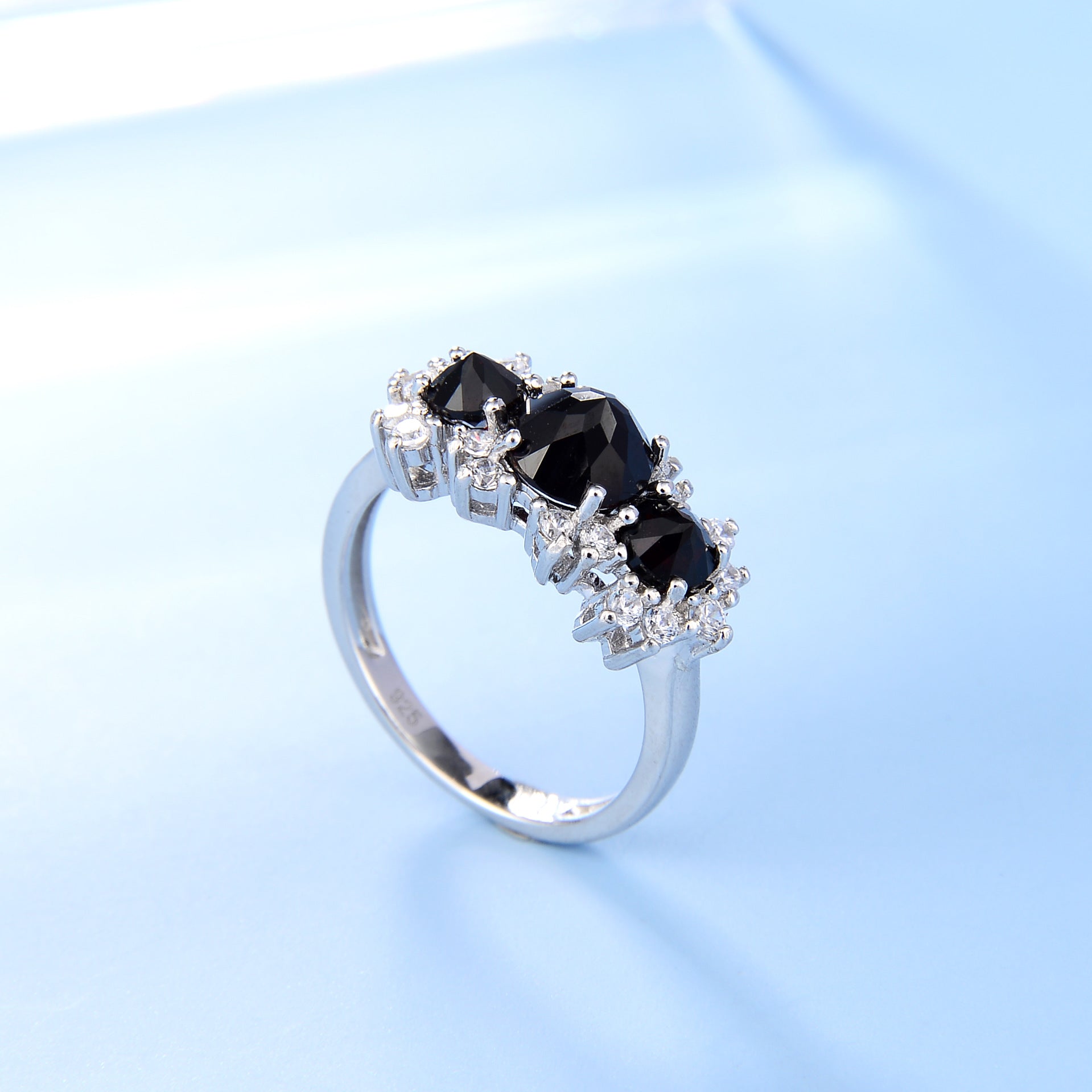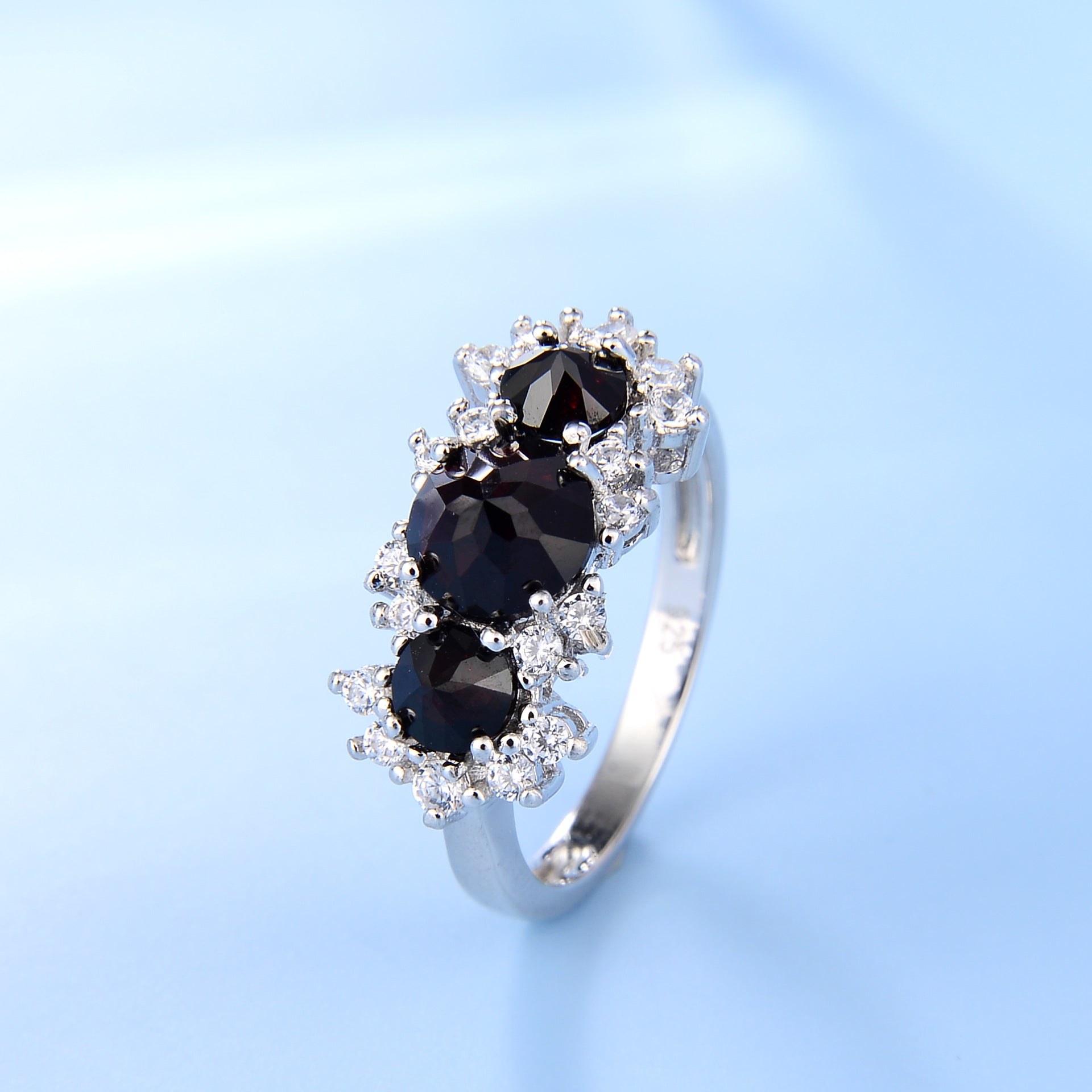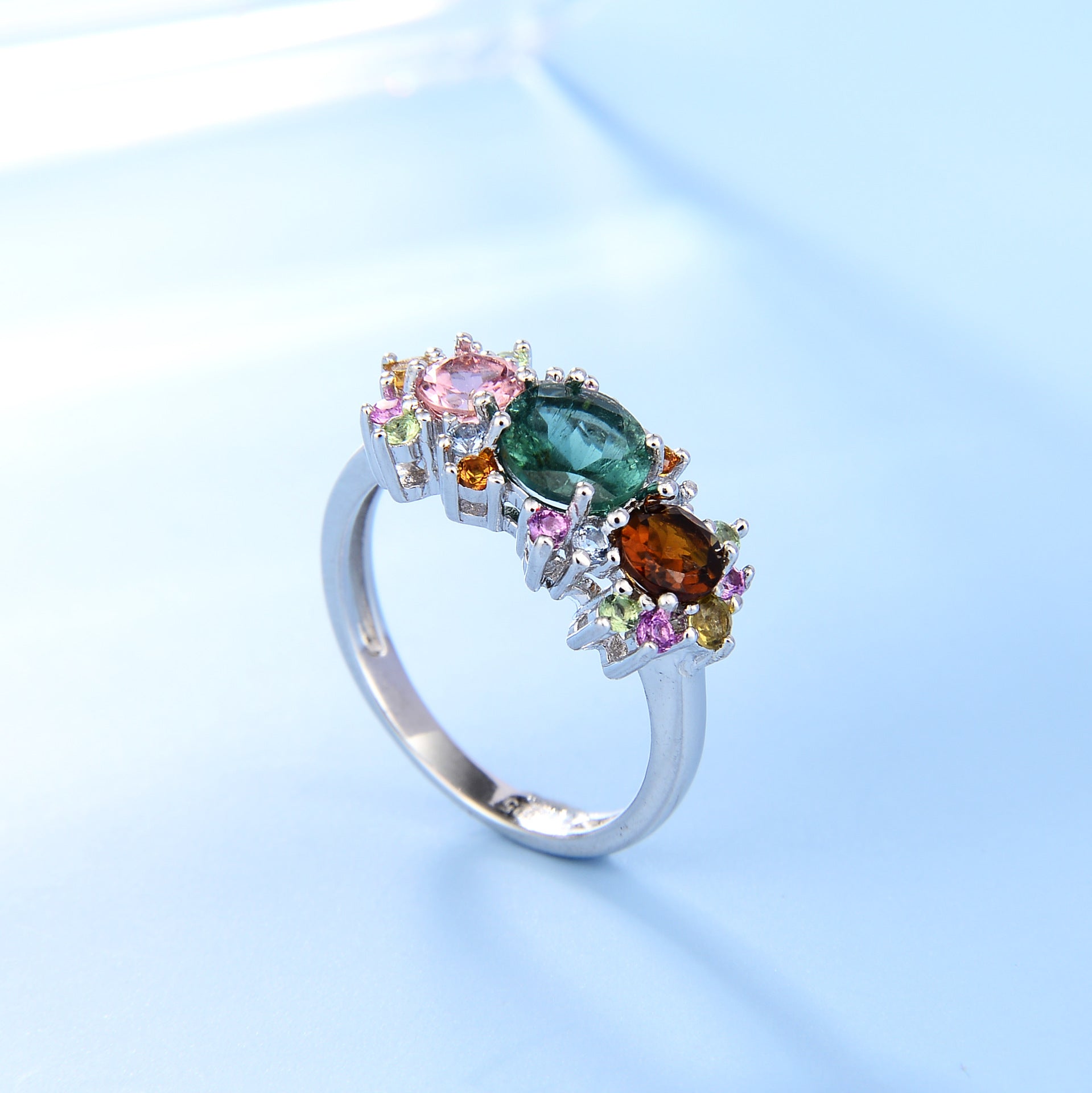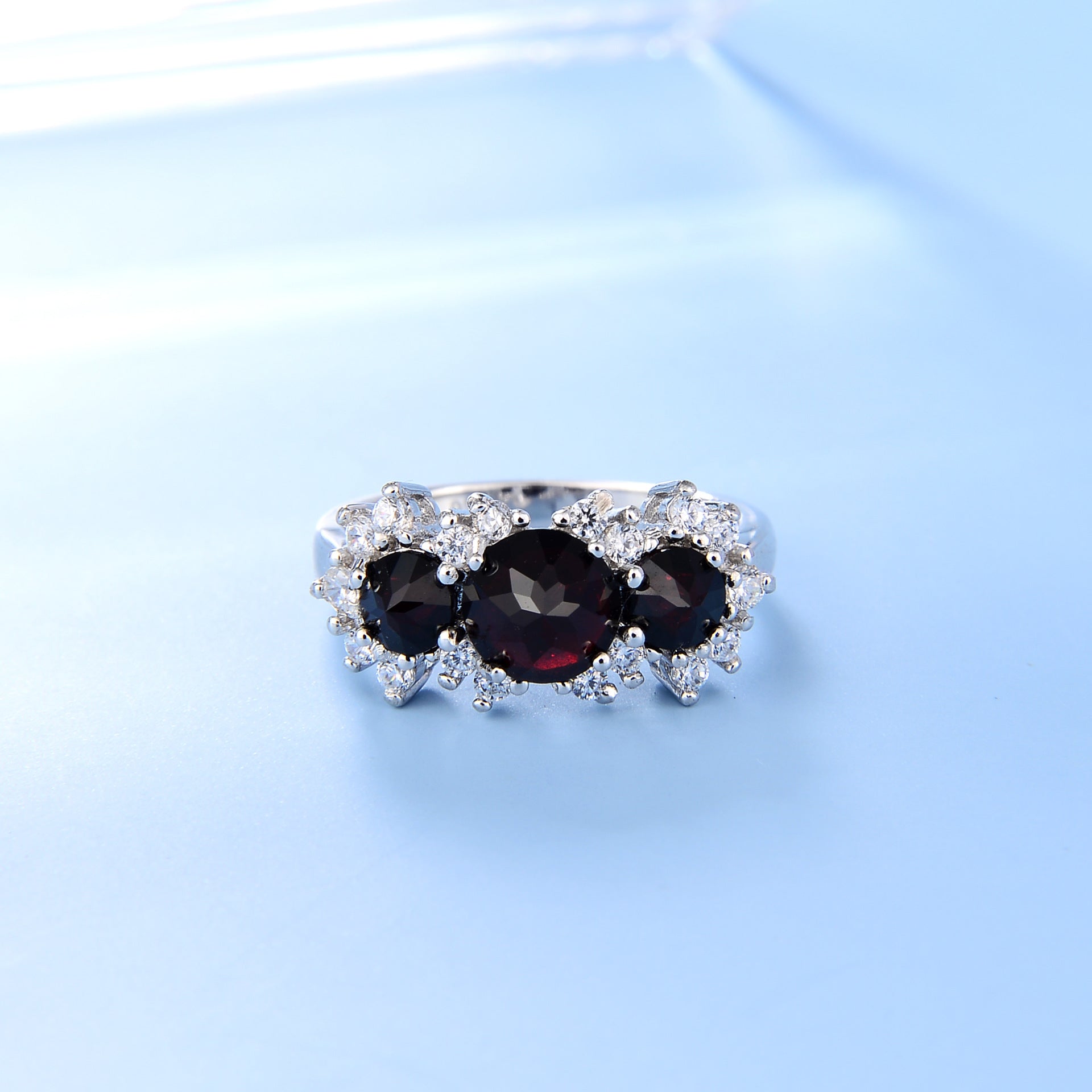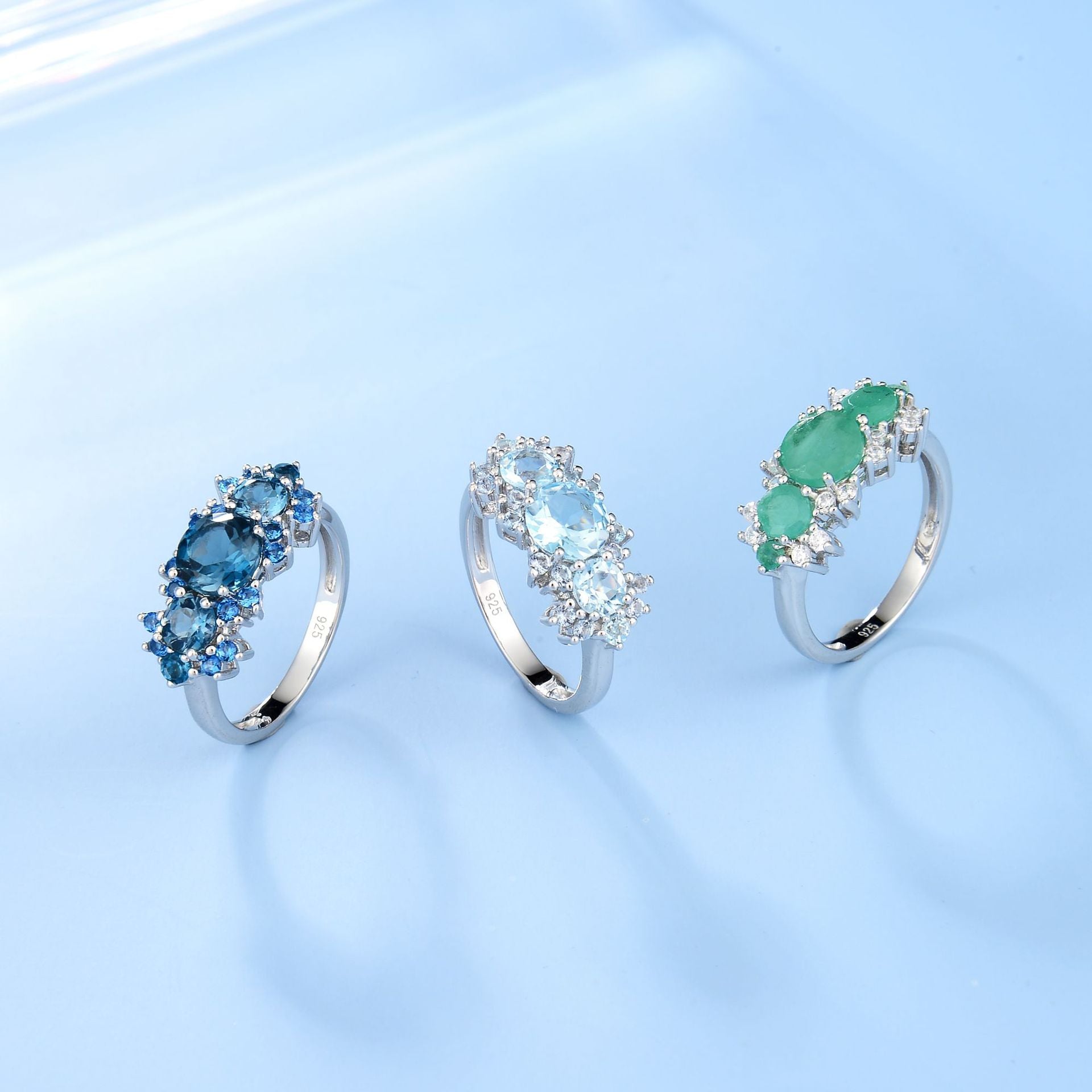 An exclusive piece of jewelry. this three round natural gemstone halo silver ring is perfect for the sophisticated wearer. A timeless design. the elegant halo surround of natural gemstones creates an unforgettable look that sparkles and shimmers in the light. Perfect for any occasions or everyday luxury. the ring is an exquisite addition to any jewelry collection.