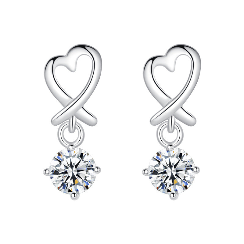 This Hollow Heart with Zircon Silver Drop Earrings for Women offer a chic. modern look. Crafted from sterling silver with a perfectly round Zircon pendant. this earrings is sure to make a statement. Perfect for any occasion.
