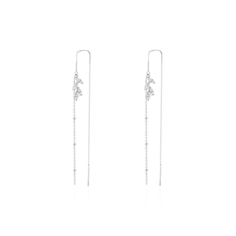 This exquisite earrings feature Marquise Zircon leaves and a tassel design connected with an Ear Line. Crafted from sterling silver. this earrings make a timeless statement for any occasion.