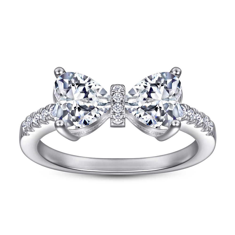 This elegant Two Heart-Shaped Zircon Bow Silver Ring features a stylish bow design crafted with two heart-shaped zircons. and small zircon accents along the ring arm for an extra touch of sparkle. The perfect gift for any occasion.
