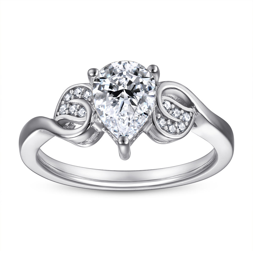 Capture hearts with this exquisite Water-drop Zircon with Leaf Silver Ring. Crafted with care. this ring features an intricate leaf shape ring arm decorated with small zircons and a luxurious water-drop zircon as main stone for a stunning look. Perfect for special occasions or everyday wear.