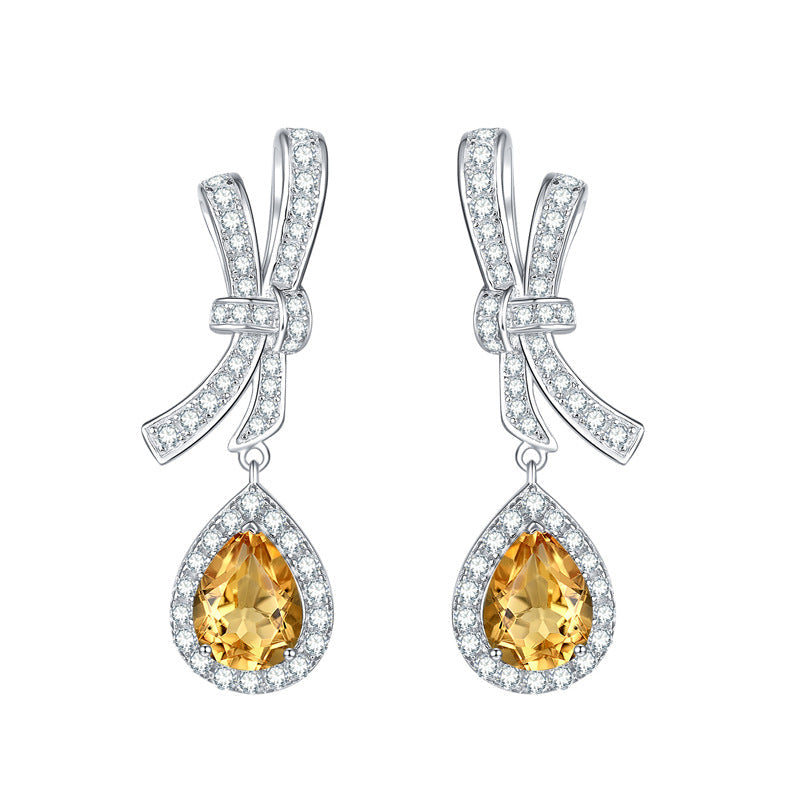 This stylish earrings feature a 6x8mm water drop yellow topaz pendant. Crafted from sterling silve with platinum plated. this earrings offer a touch of elegance to any outfit. It's perfect for special occasions or everyday wear.