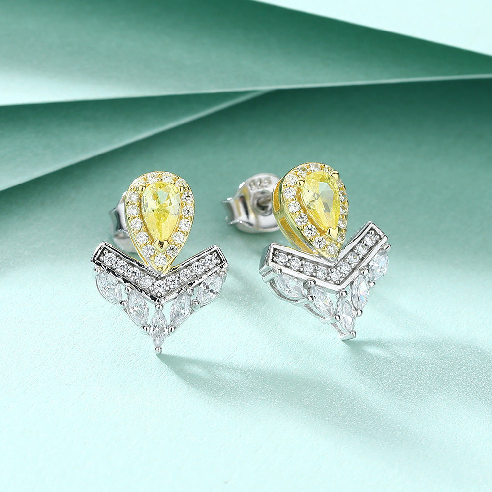 This elegant Pear Drop Yellow Zircon V-shape Silver Studs Earrings is ideal for the modern woman. Crafted with Sterling Silver. the classic V-shape settings make a subtle yet bold statement. The yellow zircon sparkle adds a luxurious touch to any look.