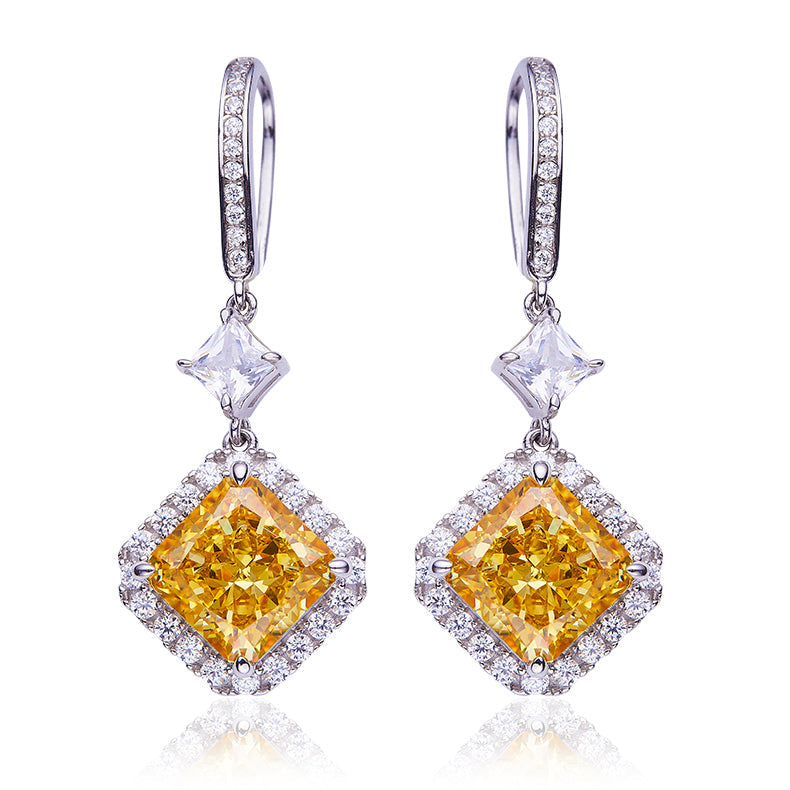 This drop earring is comprised of sterling silver and 4-carat square yellow zircon for a classic. single solitaire pendant. Embellished with small white zircons. the pendant offers a shimmering halo effect and a graceful design. Perfect for any style or event. this earring adds sophistication and grace to any occasion. Additionally. it is a great present for a loved one. signifying joy and blessings.