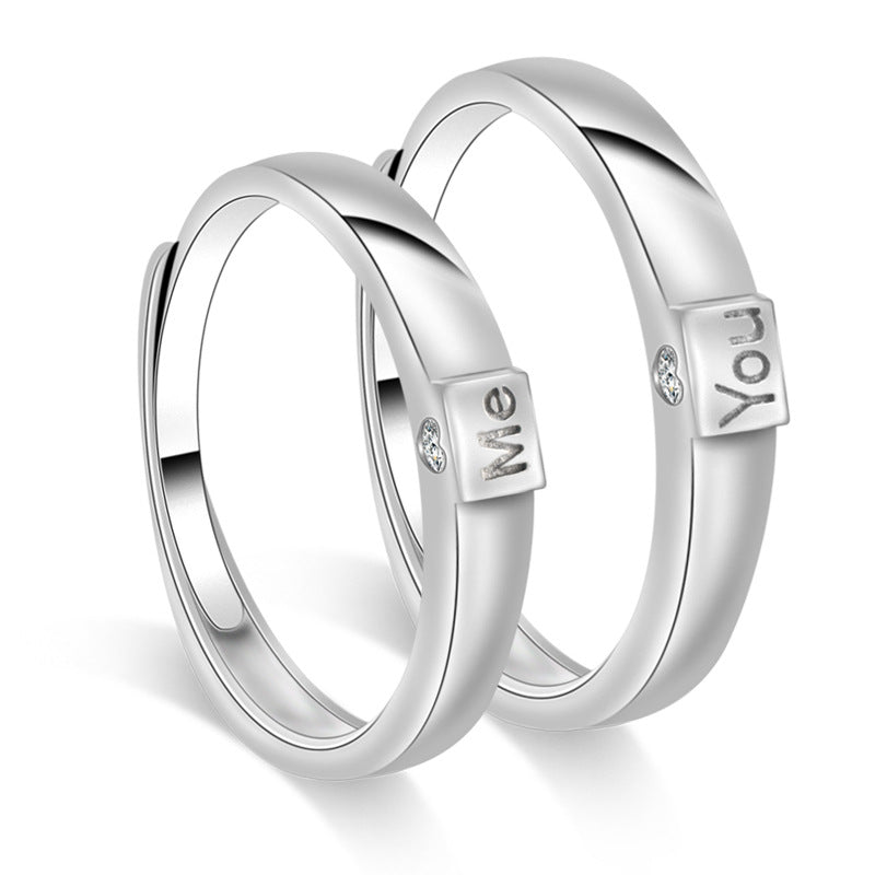 This beautiful silver couple ring is adjustable and features the elegant "You" and "Me" lettering. The adjustable opening ensures a snug fit for any finger size. With its timeless design. it's a perfect way to express your love and commitment.