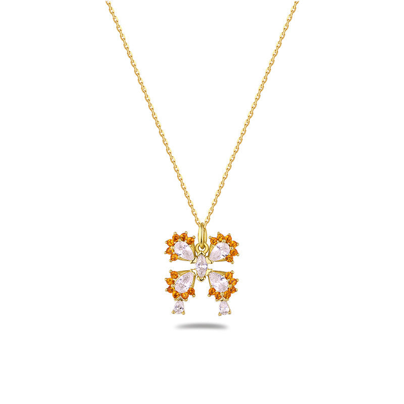 This unique butterfly necklace is beautifully crafted with classic silver plated in gold. and four dazzling pear-shaped zircons for an exquisite look. Its unique design and eye-catching sparkle make it the perfect statement piece for any occasion.