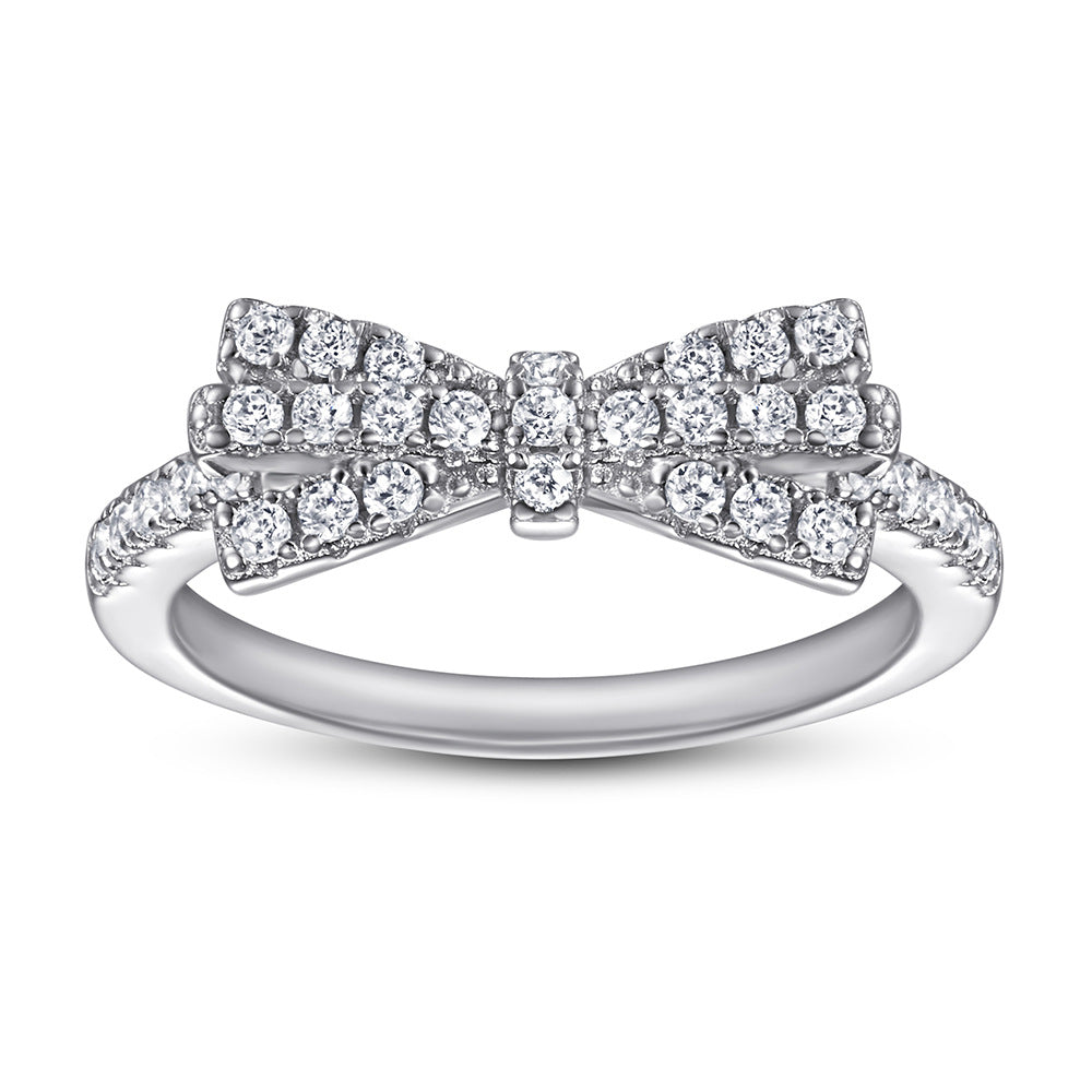 This exquisite Zircon Bow Silver Ring. crafted from sterling silver. features a delicate bow in the center adorned with small zircons. Sparkling and eye-catching. its classic look ensures you will be dressed to impress at any occasion.