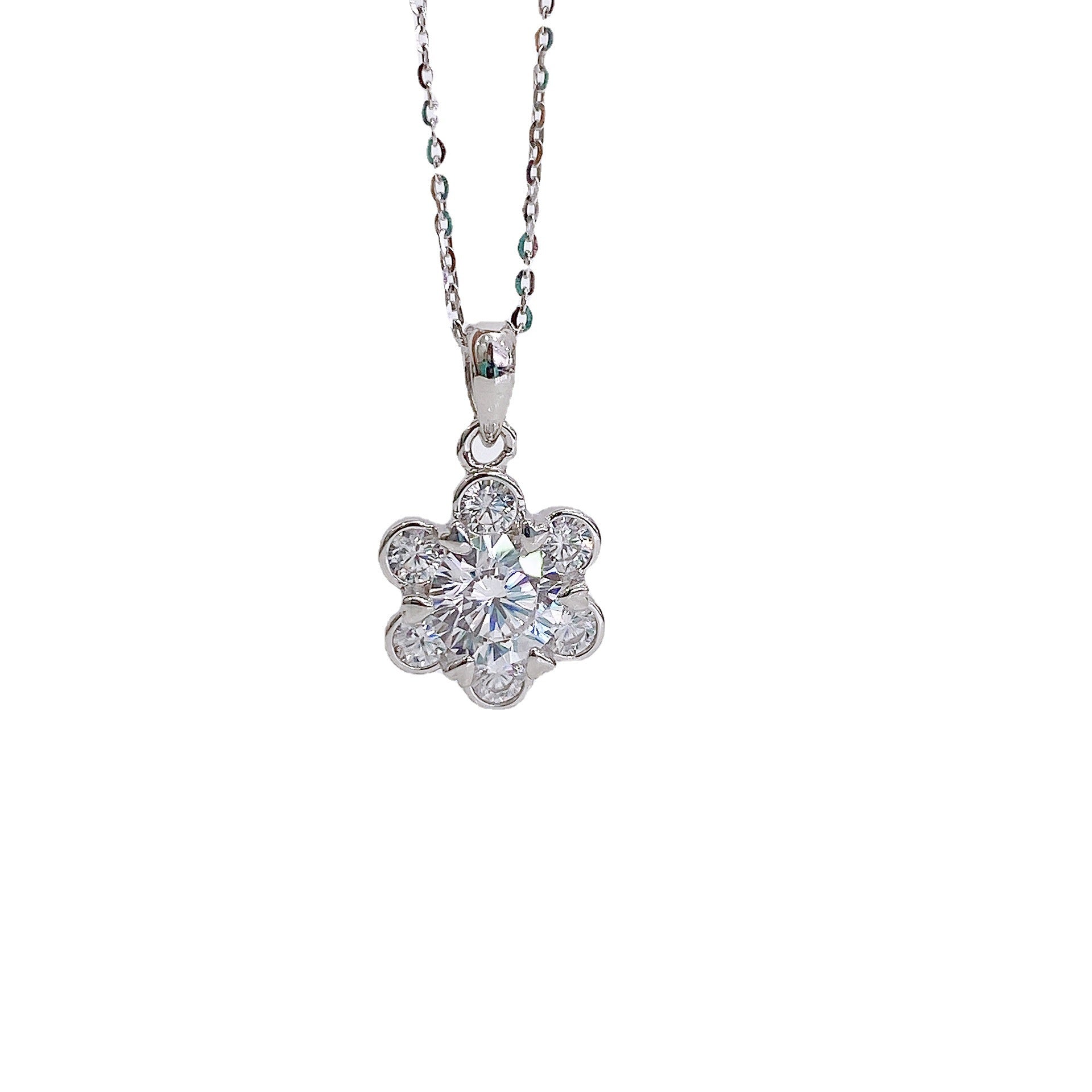 Look beautiful with this Round Zircon Flower Pendant Silver Necklace for Women. Featuring a Zircon Flower Pendant. the necklace is embellished with a Round zircon at its center. The perfect accessory for any occasions. this is a must-have for any jewelry collection.