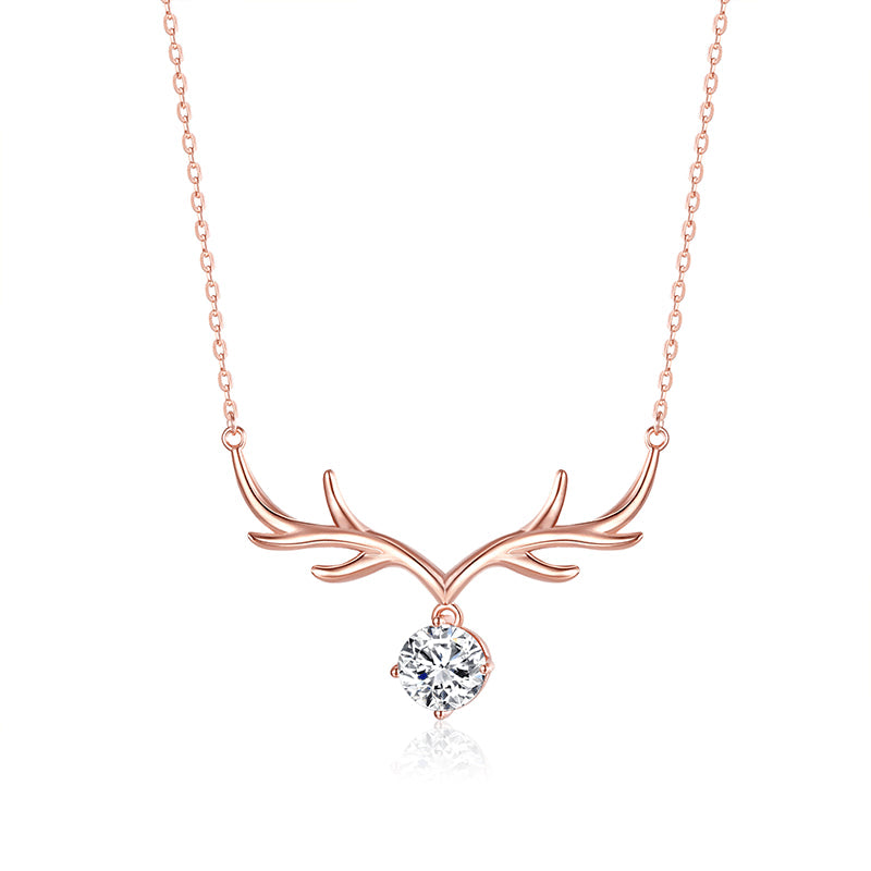 This beautiful sterling silver necklace makes a bold statement with a elk horn pendant that is finished with a round zircon . Perfect for the modern woman. this necklace is sure to complete any look.