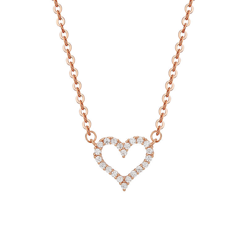 This elegant necklace features a refined Hollow Heart Pendant decorated by Zircon stones for a dazzling look. Crafted from sterling Silver. it's the perfect accessory for any occasion.